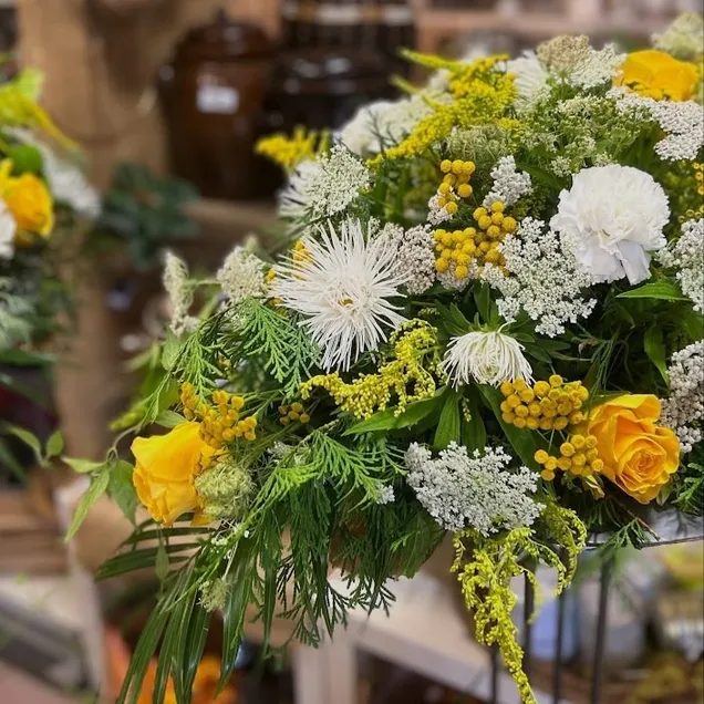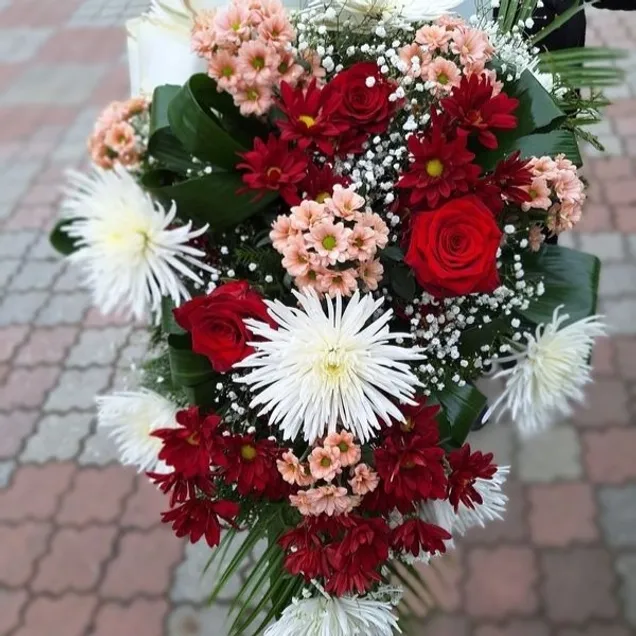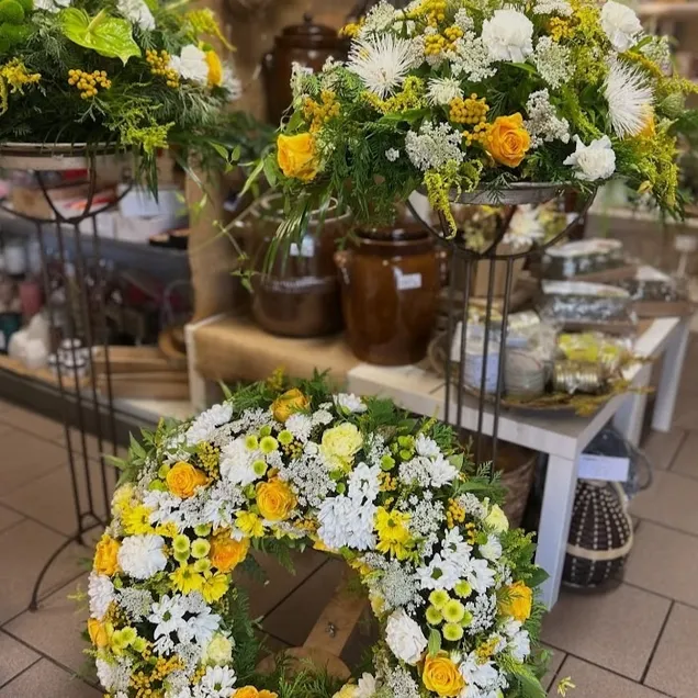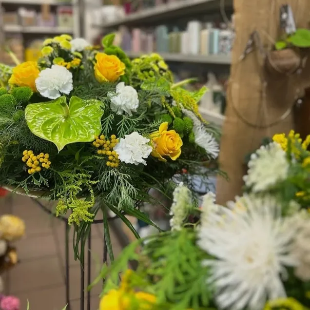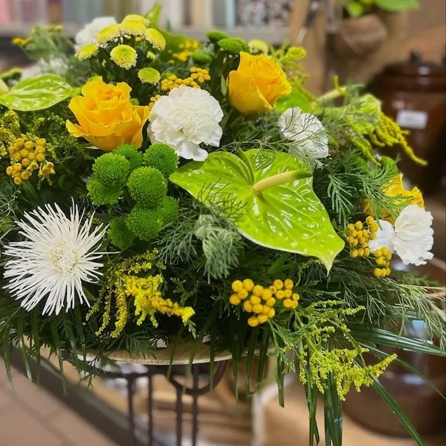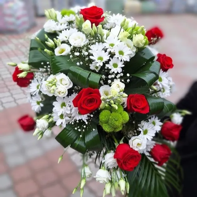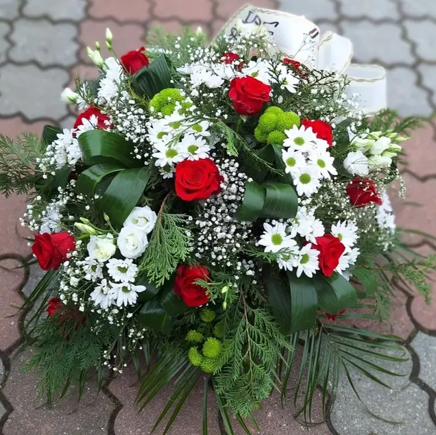 Každá kytice je aranžována do floristické hmoty, která zaručuje dlouhou trvanlivost použitých květin. Toto aranžmá je vhodné pro položení přímo na rakev a stává se tak výrazným prvkem rozloučení.