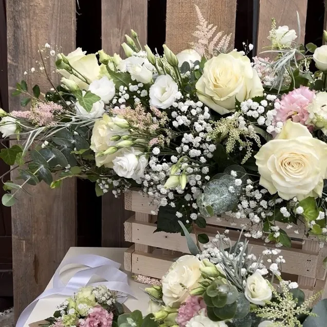 Svatební kytice pro maminky jsou krásným a symbolickým gestem poděkování. 🌸 Každá maminka obvykle dostává menší kytici ladící se stylem svatby. Kytice můžeme připravit klasicky vázané nebo jako elegantní variantu ve flowerboxu, který vydrží čerstvý ještě dlouho po svatbě.